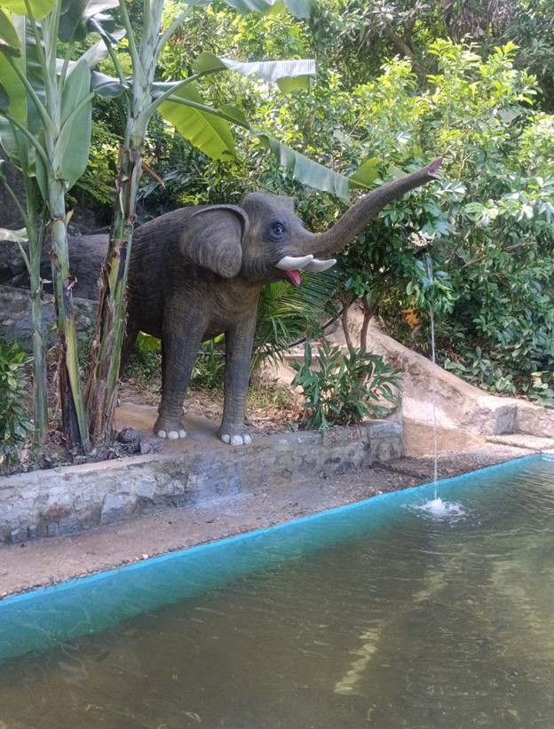 Khu du lịch Hải Vân Glamping, tọa lạc tại Đà Nẵng, là một thiên đường cho những ai yêu thích thiên nhiên và khao khát trải nghiệm nghỉ dưỡng giữa cảnh rừng núi và biển cả tuyệt đẹp. Với không gian thiên nhiên tươi đẹp cùng các dịch vụ tiện nghi, Hải Vân Glamping ngày càng trở thành điểm đến ưa thích của nhiều du khách. Để tăng thêm vẻ đẹp và sự cuốn hút cho khu du lịch, ban quản lý đã quyết định xây dựng một tượng voi cao 2m tại trung tâm hồ nước.