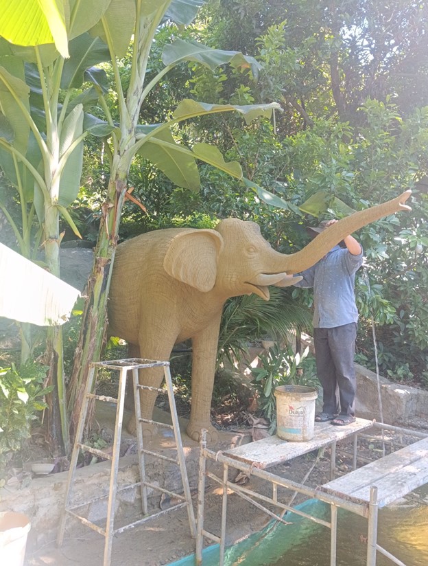 Công trình tượng voi tại khu du lịch Hải Vân Glamping là một kỷ niệm đáng nhớ đối với chúng tôi. Dù gặp nhiều khó khăn trong quá trình thi công, từ việc vận chuyển nguyên vật liệu đến những cơn mưa bất chợt, nhưng nhờ sự cố gắng và kiên trì, chúng tôi đã hoàn thành bức tượng đúng tiến độ và mang lại niềm vui cho chủ đầu tư cũng như sự hài lòng cho du khách